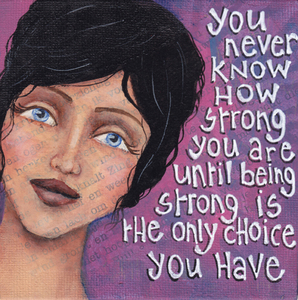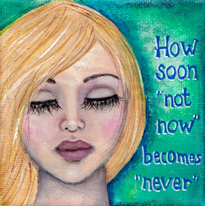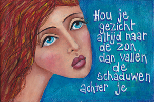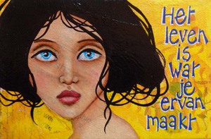 2019minatuurschilderijtje op canvas - gezicht met spreuk