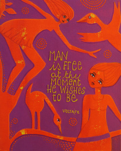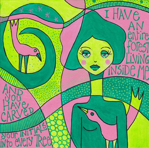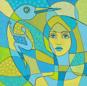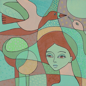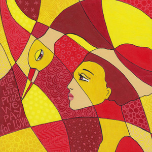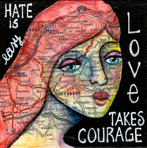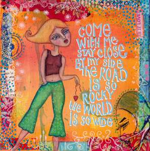 2015schilderijtje in gemengde technieken met collage, acryl, waterverf en inkt - op canvas, zijkanten zijn meebeschilderd dus klaar om op te hangen