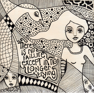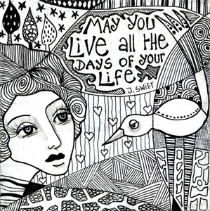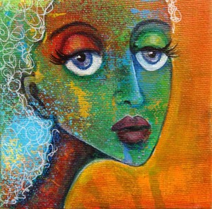 2019miniatuurschilderijtje met gezicht en doodles en spreuk