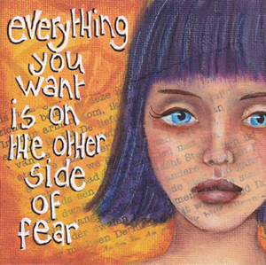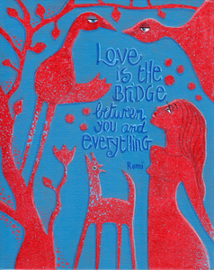 2019schilderijtje in gemengde technieken op mini-canvasboard, met spreuk