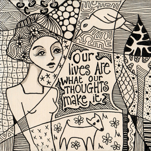 2018doodle-schilderij op hout met haakje achteraan om op te hangen